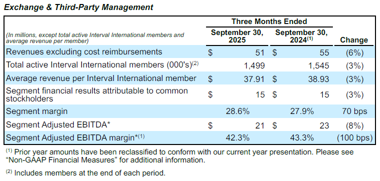 Revenues excluding cost reimbursements and Segment Adjusted EBITDA decreased year-overyear primarily due to lower transactions and Getaway volume at Interval International.