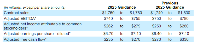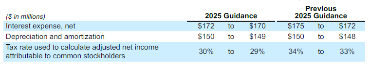 The Company provides full year 2025 guidance as reflected in the chart below.