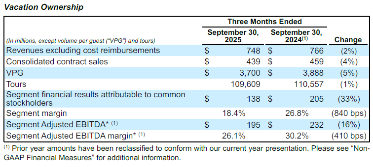 Marriott Vacations Worldwide Reports Third Quarter 2025 Financial Results