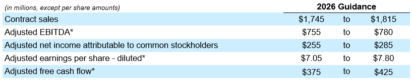 This press release and accompanying schedules contain “forward-looking statements” within the meaning of federal securities laws, including statements about opportunities for growth, increased profitability, enhanced operational efficiencies, inventory, cash flows, estimated impacts of change in accounting for borrowings under the Company’s warehouse credit facility and cost savings and full year 2026 outlook for contract sales, results of operations and cash flow.
