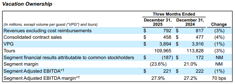 Marriott Vacations Worldwide Reports Fourth Quarter and Full Year 2025 Financial Results