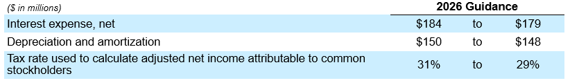The Company is providing guidance for the full year 2026 as reflected in the chart below.